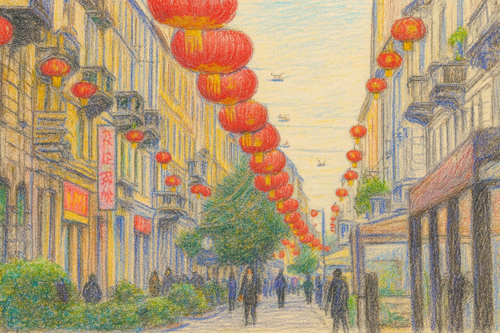 Og i dag er gaten fremdeles stedet der alt rører seg uten å bråke. Steam fra dumplings, sykler som glir forbi, folk som småprater på fortauet. Det er et nabolag, ikke en turistfelle, og du merker det i måten alle beveger seg på. Ta en bubble tea, sett deg ned og føl at du er midt i Milanos mest levende kryss.